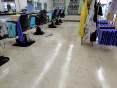 12月8日(月曜日)、日置市伊集院町郡にある理髪店の床清掃を行いました。