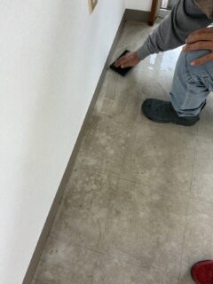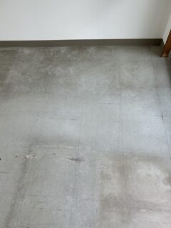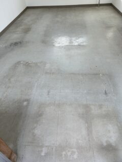 まず床全体に剥離剤を塗って剥離し、ポリッシャーで洗浄をしました。