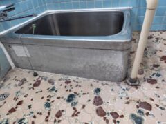 お風呂はタイル張りの壁と床で、浴槽はステンレス製でした。