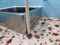 長年の蓄積でタイルやステンレスに頑固に付着した水垢を取るのが大変でしたが、すっきりピカピカに取り除き、お客様に満足いただける仕上がりになりました。