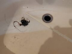 またトイレ掃除の際、手洗い場の水の流れが悪かったので、排水管の内部にたまったゴミや髪の毛を取り除く清掃も行いました。
